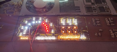 und hier hab ich mal angefangen die positionen der einzelnen led's auszumitteln - zum schluss werden die einfachen roten durch smd led's ersetzt, da ich ja platz für jeweils 2 farben brauche...