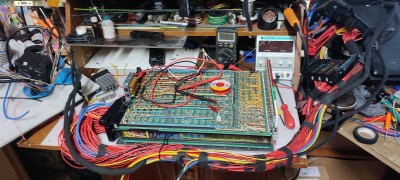 alle lastverbindungen und steueranschlüsse angelötet; zusätzlich noch die überwachung (die ganzen lustigen kabelchen, die kreuz und quer gehen)