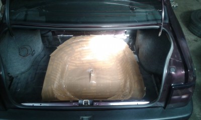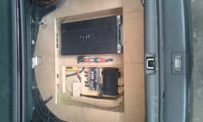 Der Innenraum der "Kiste" wird noch abgedaemmt, und obendrauf wird ein neuer Teppich kommen der in der Oeffnung eingeschnitten wird damit der Deckel mit Teppichausschnitt geoeffnet werden kann. Der Sub wird natuerlich auch noch abgedeckt, mit was genau weiss ich noch nicht.